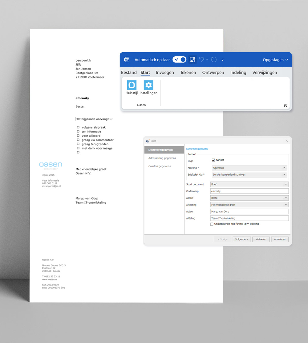 Nu de overstap is gemaakt, start de inventarisatie en optimalisatie van de sjablonen. Kleine aanpassingen in de huisstijl, uitbreiding naar Outlook en Excel, en de koppeling met SharePoint staan op de agenda. Het enthousiasme bij gebruikers groeit. “Het vernieuwen van de sjabloonoplossing zorgt ervoor dat Oasen-medewerkers opnieuw naar vorm en inhoud kijken,” zegt Frank. “Dat past bij onze ambitie om steeds professioneler en consistenter te communiceren.”