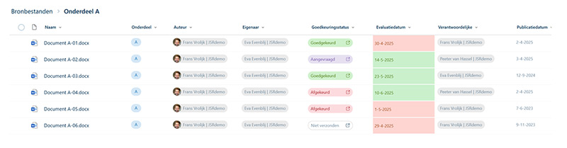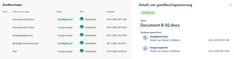 In een SharePoint-documentenbibliotheek zorgt een standaard goedkeuringsflow ervoor dat documenten eerst door een beoordelaar worden goedgekeurd of afgewezen met de nodige feedback voordat ze worden gepubliceerd.